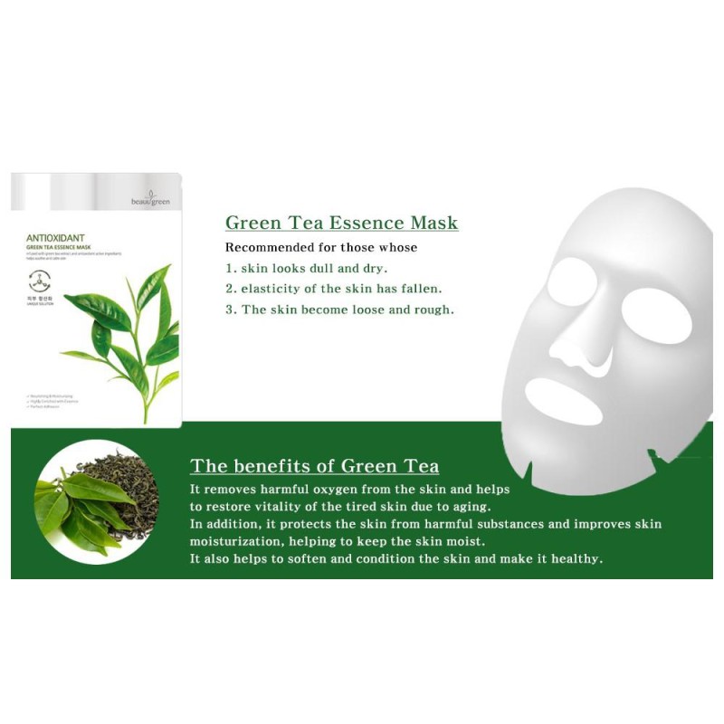 Arcmaszk zöld tea kivonattal, amely gazdag antioxidánsokban, tanninokban és koffeinben.