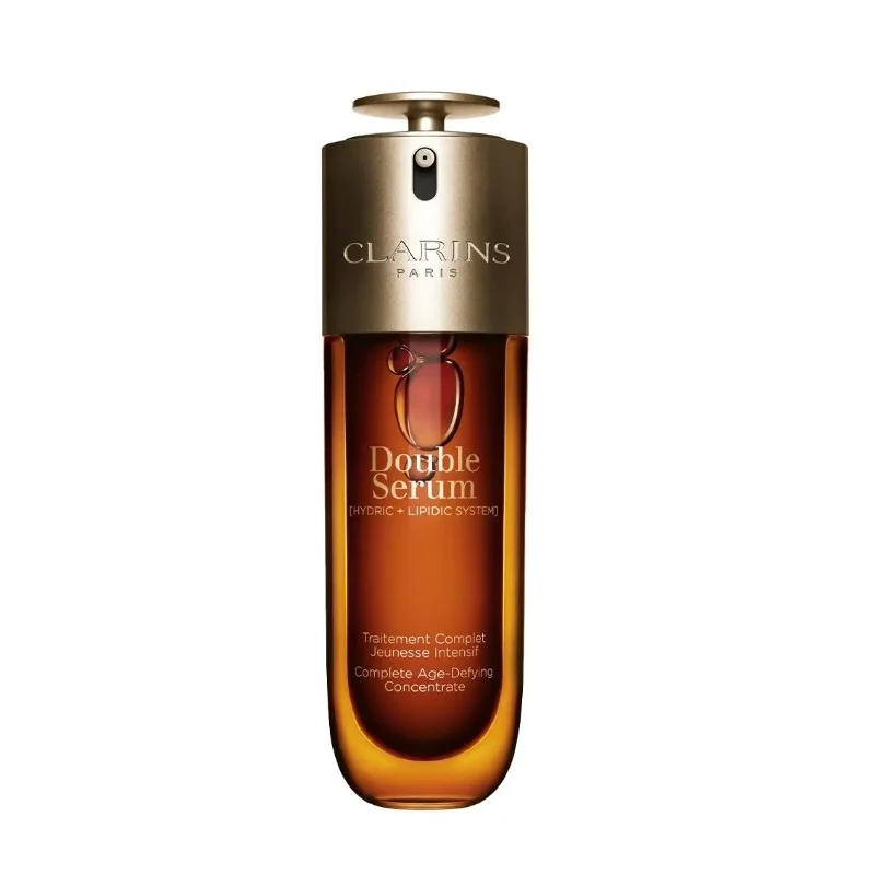 Clarins Double Serum egy intenzív anti-aging arcszérum, amely víz- és olajalapú kettős formulával rendelkezik. 21 erőteljes növényi kivonatot tartalmaz, amelyek szinergikus hatással vannak a láthatóan simább, feszesebb és ragyogóbb bőr érdekében. Támogatja a természetes kollagéntermelést és helyreállítja a bőr rugalmasságát. A szérum küzd az öregedés jelei ellen, mint a finom vonalak, ráncok és a ragyogás elvesztése. Könnyű, nem zsíros textúrája gyorsan beszívódik. Minden bőrtípusra alkalmas, beleértve az érzékeny bőrt is. Innovatív pumpája lehetővé teszi az adagolás szabályozását a bőr igényei szerint. Bőrgyógyászatilag tesztelt és parabénmentes.