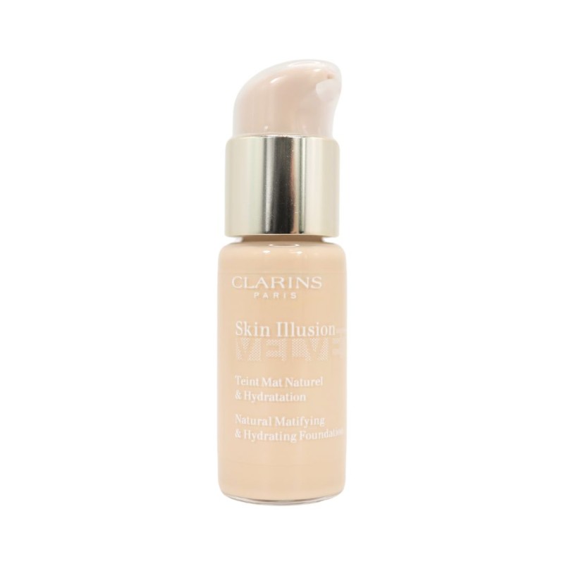 Clarins Skin Illusion Velvet Foundation egy luxus alapozó, amely könnyű textúrával és természetes matt finish-sel rendelkezik, és arra lett tervezve, hogy a bőrnek természetes, egészséges megjelenést adjon. Ez a termék ötvözi az alapozó előnyeit a bőrápolással, miközben friss és sima fedést biztosít egész nap. A sikeres Skin Illusion vonal ihlette, ez az alapozó „második bőr” érzést kínál, anélkül, hogy megnehezedne vagy maszkérzetet keltene. Természetes növényi kivonatokkal gazdagított, a Skin Illusion Velvet Foundation tökéletes azok számára, akik természetesen kinéző, matt finisű arcbőrt szeretnének.