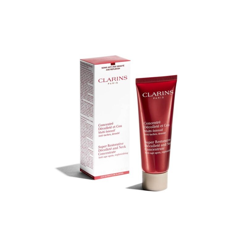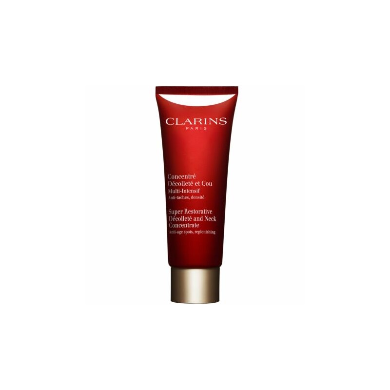 Clarins Super Restorative Décolleté and Neck Concentrate egy speciális bőrápoló termék a dekoltázs és a nyak bőrének, amelyet a híres kozmetikai márka Clarins készített. Azoknak a kényes területeknek a specifikus igényeinek megfelelően tervezve, ez a koncentrátum intenzív helyreállító ápolást kínál. Fejlett formulájával a termék ideális nők számára, akik szeretnék kezelni az öregedés jeleit és visszaállítani bőrük fiatalosságát. A ráncok csökkentésére és a bőr feszesítésére helyezi a hangsúlyt, hogy visszaadja ennek a gyakran elhanyagolt területnek az elasztikusságát és simaságát.