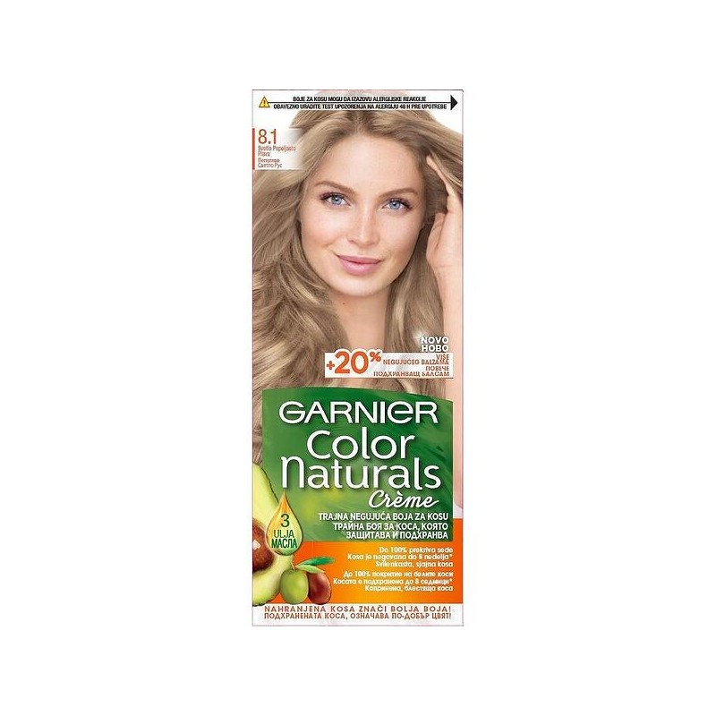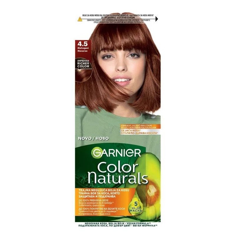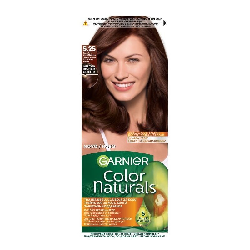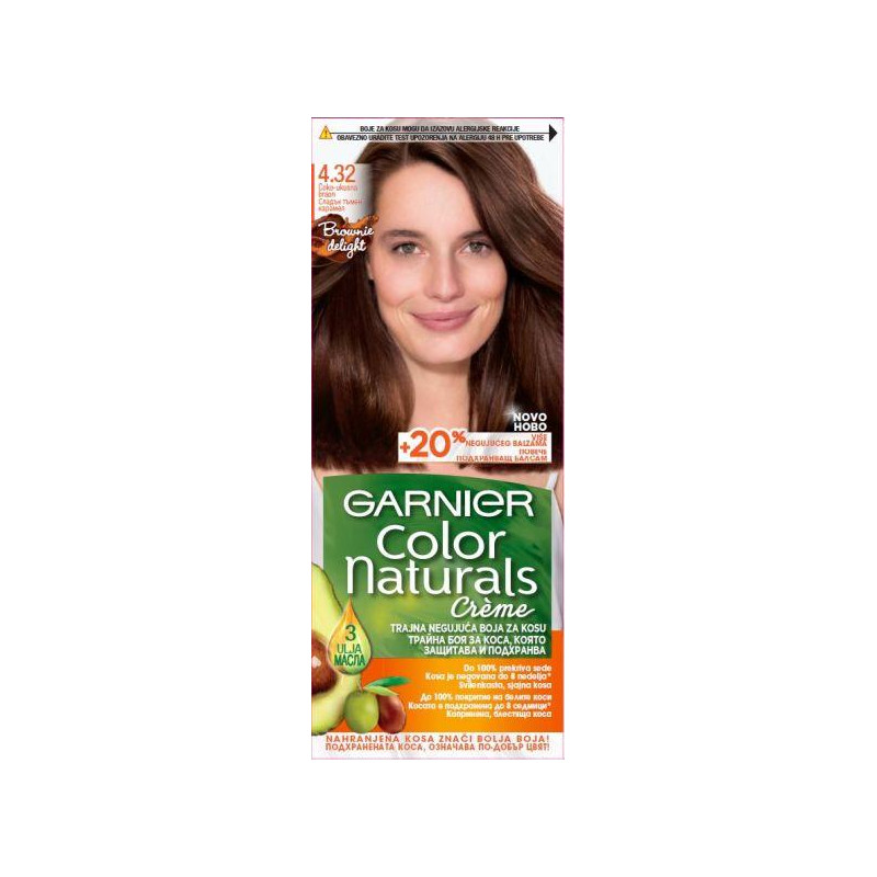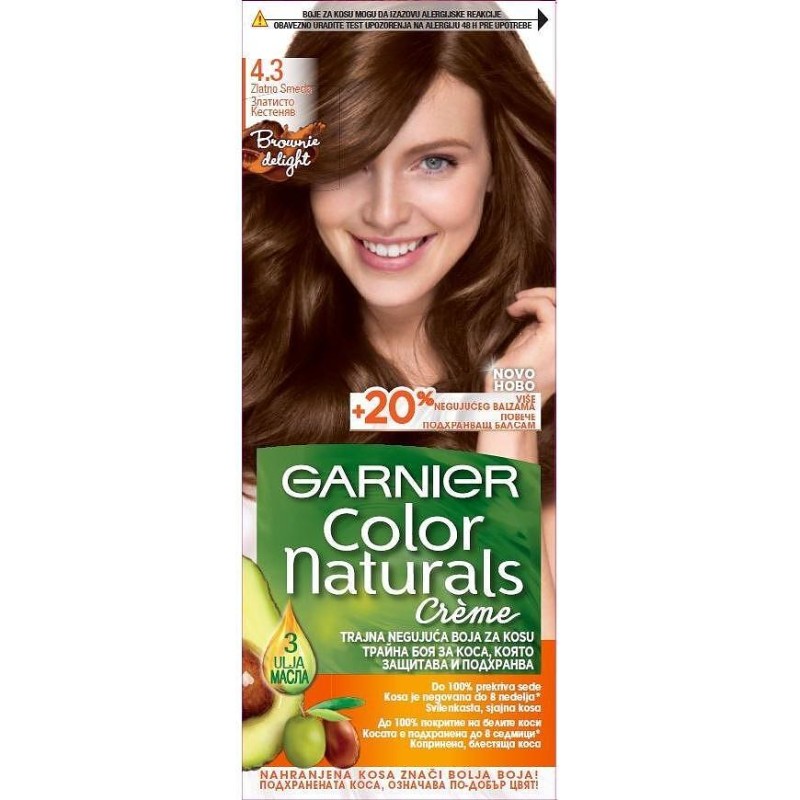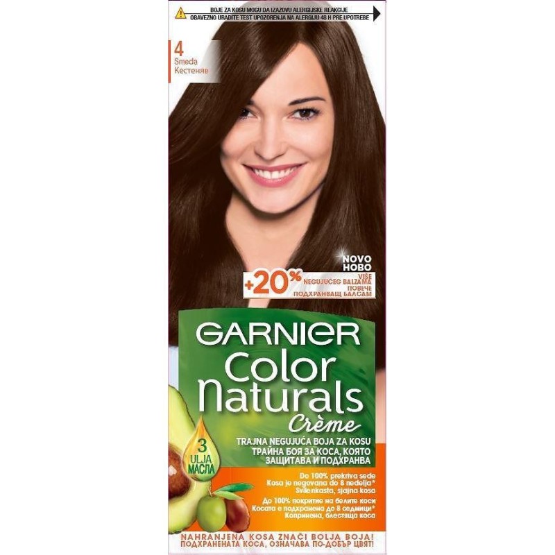 Garnier A Color Naturals egy tartós hajfesték dúsított formulával, amely hosszantartó színt, gazdag árnyalatokat és 100%-os fedést biztosít az ősz hajszálaknak. A hajápolás szem előtt tartásával kifejlesztett festék természetes olajok (olíva, avokádó és shea) hármas kombinációját tartalmazza, amelyek a festés során táplálják és hidratálják a hajat, puhává, selymessé és fényessé téve azt.