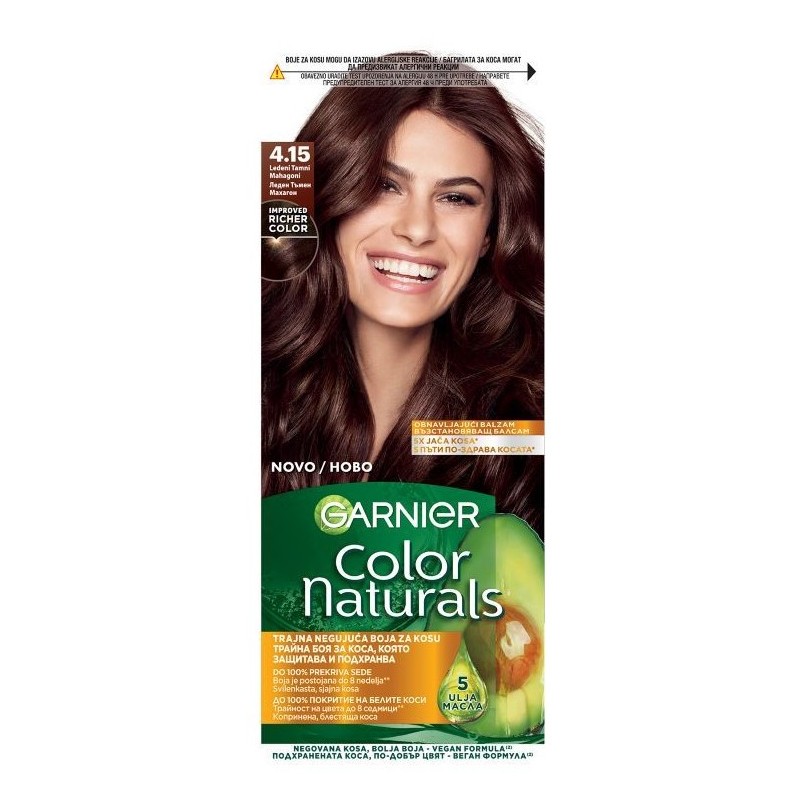 A hosszan tartó, természetes hatású színt kereső nők és férfiak számára kifejlesztett Garnier Color Naturals a klasszikus és modern árnyalatok gazdag palettáját kínálja. Krémes textúrájának köszönhetően a szín könnyen felvihető, nem folyik és egyenletes fedést biztosít a tövektől a hajvégekig.