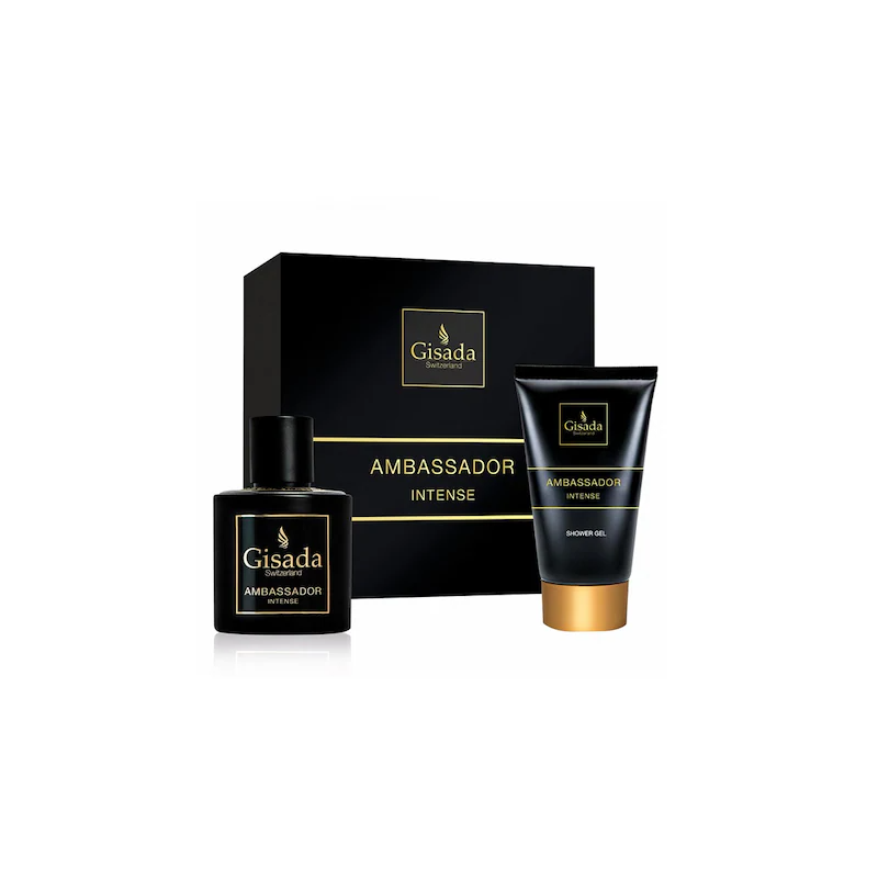 Ajándékcsomag különböző termékekkel az Ambassador Intense sorozatból, hogy a kedvenc illat mindig veled legyen.