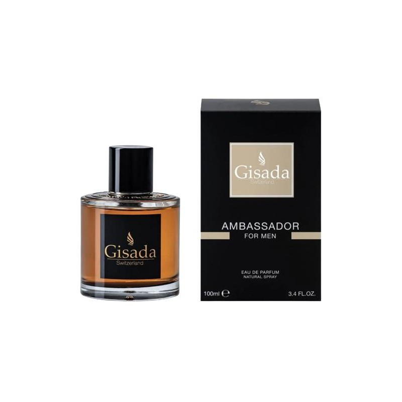 Az illatos kompozícióban a Gisada Az Ambassador Men harmonikusan ötvözi a gyümölcsös, fűszeres és fás hangsúlyokat. Az illat első benyomása friss és életvidám, amit ropogós alma, zöld mandarin, játékos ibolya és kardamom felhasználásával értek el. A szívében az egzotikus mangó hangsúlyt könnyed levendulával, pacsulival, bazsarózsával és fekete borssal egyensúlyozzák. Az alapakkord vanília, borostyán, teakfa, vetiver és moha biztosítja az illat érzéki, férfias és érintésre késztető befejezését.