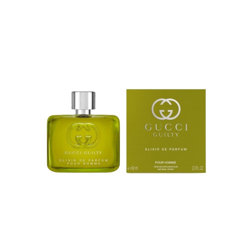 Gucci Guilty Elixir de Parfum Pour Homme egy fás-ambaros bőr illat férfiaknak, amelyet 2023-ban mutattak be. Quentin Bisch és Nathalie Cetto parfümőrök alkották, ez a parfüm merész kijelentést és színes excentrikát képvisel, bátorítva a férfiakat, hogy elfogadják autentikus lényüket és ünnepeljék a szerelem végtelen formáit.