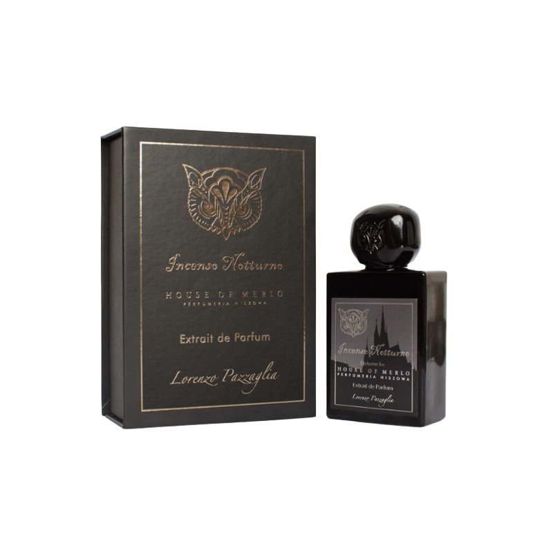 Lorenzo Pazzaglia Incenso Notturno Extrait de Parfum egy niche unisex illat, amelyet 2024-ben mutattak be, és amely misztikus, balzsamos és enyhén gótikus értelmezést kínál a tömjénnek. Az illat egy aromás utazásként készült a fényből a sötétségbe – citrusos frissességtől a füstös, fás mélységig.