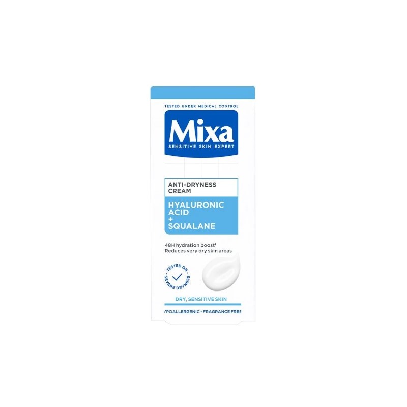 DERMATOLOGIKUS AKTÍV ÖSSZETEVŐK KOMBINÁCIÓJA HIÁLURONSAV: Ismert intenzív hidratáló tulajdonságairól, segít a nagyon száraz bőr elleni küzdelemben. ​ SKVALÁN: Ismert arról, hogy képes erősíteni a bőr védőfunkcióját, valamint csökkenti a feszülést és a kényelmetlenséget. ​ BIZONYÍTOTT EREDMÉNYEK​ 48 óráig növeli a hidratáltságot.* ​ 5 nap után: Csökkenti a nagyon száraz területek megjelenését a bőrön.** ​ Frissítő, könnyű textúra. Nem komedogén. Alkoholmentes formula.***​ HASZNÁLATI ÚTMUTATÓ: Használja az arc tisztítása és a napi szérum alkalmazása után. Pumpás csomagolás, amely megvédi a formulát a levegővel való érintkezéstől. ​ MIXA GARANCIA ÉRZÉKENY BŐRRE: ORVOSI KONTROLL ALATT TESZTELT, KLÍNIKAILAG BIZONYÍTOTT EREDMÉNYEK, HIPÓALLERGÉN FORMULA, 100% ÉRZÉKENY BŐRÖN TESZTELT. ​ *Mérőeszközös teszt, 24 fő. ​ **Felhasználói önértékelés, 55 nő. ​ ***Etanol.