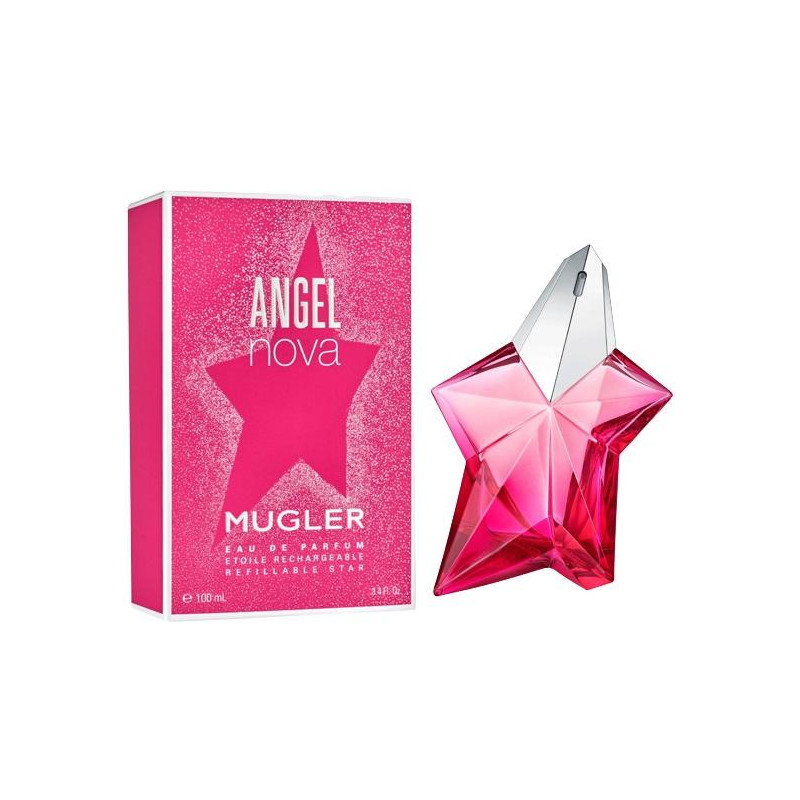 Mugler Az Angel Nova egy varázslatos női illat, amely 2020-ban jelent meg a Mugler ikonikus Angel termékcsaládjának részeként. A Sonia Constant, Louise Turner és Quentin Bish parfümkészítők által megalkotott parfümöt olyan magabiztos és álmodozó nőknek tervezték, akik nem félnek vágyaikat követni. A mély rózsaszínre festett, aszimmetrikus csillag alakú üveg a nőiséget és az illat dinamizmusát tükrözi.