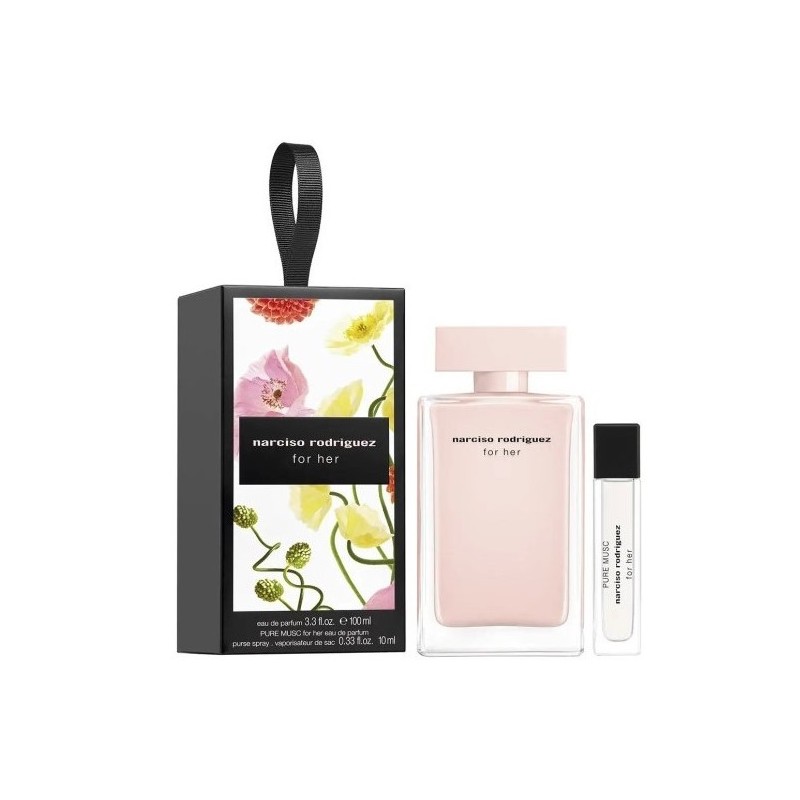 Ebben a különleges csomagban egy kis üveg Narciso Rodriguez Pure Musc for Her parfümöt is kap, amely a pézsmát a legtisztább és legvonzóbb formájában mutatja be. A 2019-ben bevezetett Pure Musc ideális más illatokkal való rétegezéshez a kollekcióból, vagy önálló viselésre, mélységet és intenzitást adva az illatprofilodnak.