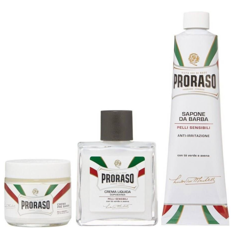 A Proraso Vintage Sensitive készlet egy gyűjtői dobozt mutat be, amely az 50-es évek ikonikus reklámját tartalmazza, tisztelegve a márka története előtt, és három alapvető elemet foglal magában a klasszikus borotválkozáshoz - előborotválkozó krémet, aftershave balzsamot és borotválkozó krémet. Ezek zöld teát és zabpelyhet tartalmaznak, és érzékeny bőrre is alkalmasak. A termékek hibátlan olasz ízlést és a márka történetét közvetítik, amely közel egy évszázada a borotválkozás világában a minőség szinonimája.