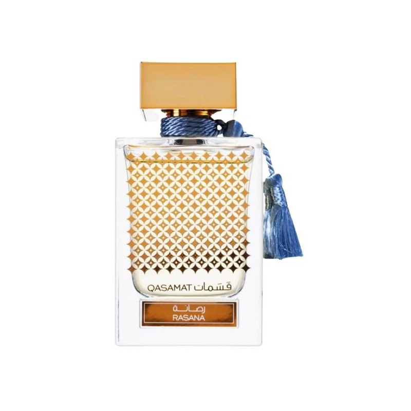 A férfiak és nők számára egyaránt alkalmas parfüm a kortárs trendeket ötvözi a hagyományos keleti esszenciákkal, így viselőjének a luxus és a titokzatosság érzését nyújtja. A Rasasi Qasamat Rasana tökéletes esti eseményekre vagy különleges alkalmakra, elegáns és figyelemre méltó választás a parfümök minőségével és összetételével szemben magas követelményeket támasztó emberek számára. A parfümöt a Creed Aventus For Her ihlette .