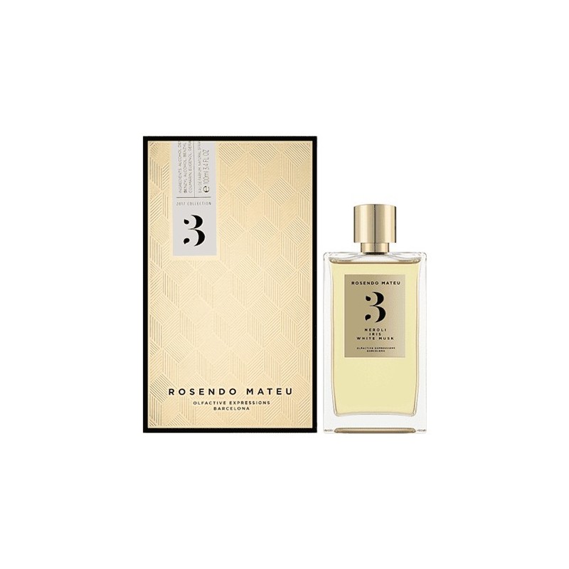 A Rosendo Mateu Nº 3 Neroli, Iris, White Musk EDP a virágos-fás-pézsmás uniszex illatok kategóriájába tartozik, amelyet a friss citrusos, virágos és meleg alapjegyek harmonikus kombinációja jellemez.