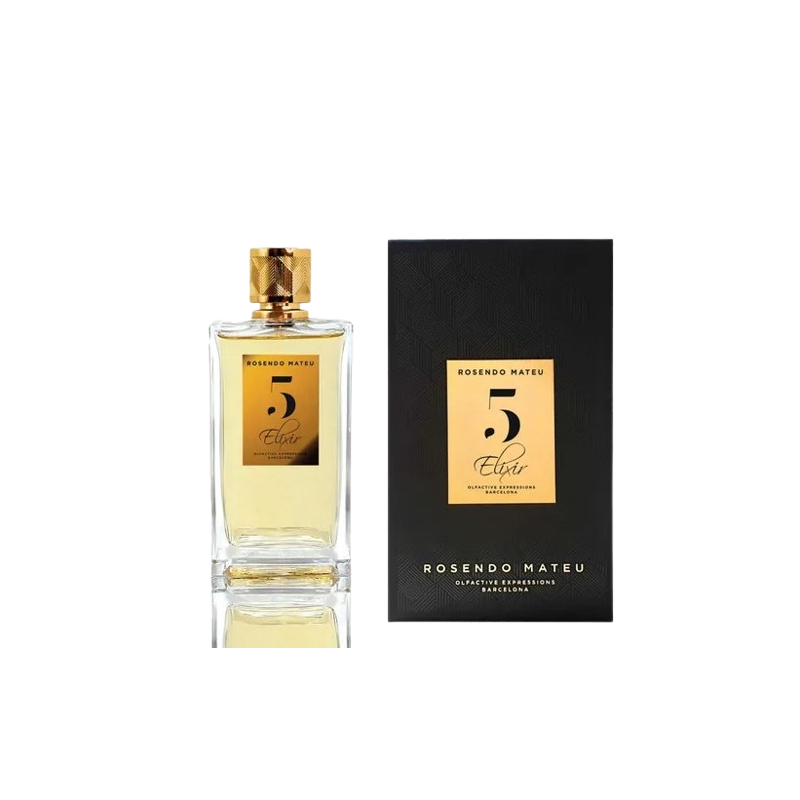 Rosendo Mateu Nº 5 Elixir Extrait de Parfuma keleties-ínyenc uniszex kivonatos parfümök közé tartozik, gazdag, meleg és csábító karakterrel.