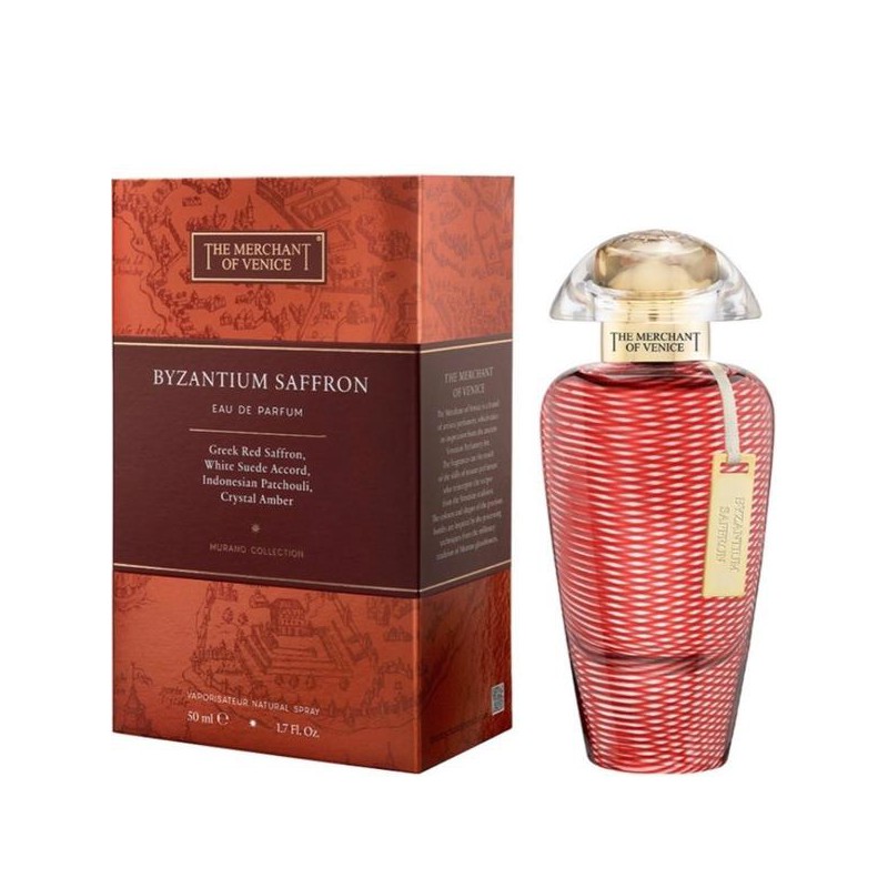 A Byzantium Saffron fokozatosan bontakozik ki a bőrön – kezdetben a sáfrány és a fekete bors pikantériája érezhető, friss citrommal társítva. Idővel a szívillat puha jegyeket tár fel a fehér velúr bőrből, cédrusból és a fehér liliom, valamint orgona virágzati akkordjaiból, mélységet és eleganciát adva az illatnak. Az indonéz pacsuli és a kristályos borostyán alapjegyek meleg és érzéki befejezést biztosítanak.