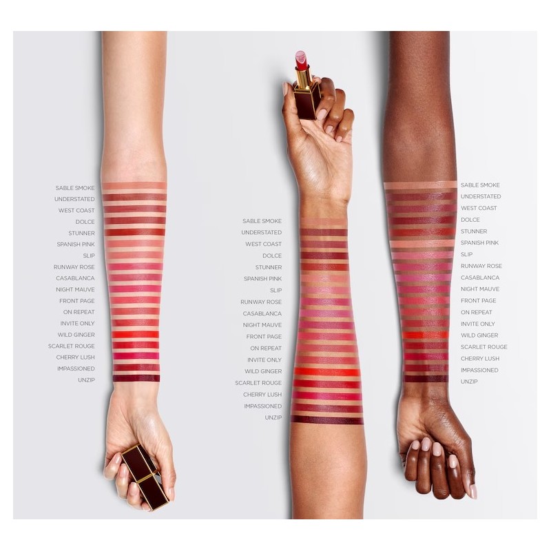 A rúzs Tom Ford A Lip Color nemcsak gyönyörű ajkakat biztosít, hanem lenyűgöz egy könnyű és nem tolakodó illattal is, amely hozzájárul a luxus és kifinomultság érzéséhez. A fő összetevők, mint a kamilla olaj és a brazíliai dió, kellemes és lágy illatot kölcsönöznek a terméknek.