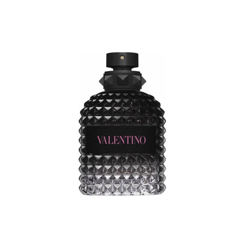 A flakonja a Valentino A Uomo Born in Roma rendkívül elegáns és modern, a luxust és a kifinomultságot egyesíti. A dizájnja Róma építészeti elemeiből merít inspirációt, ötvözve a klasszikus és a modern motívumokat. Az üveg négyzet alakú és dombornyomott felülettel rendelkezik, amely fém tüskékhez hasonlít. Kiváló minőségű üveget használtak az elkészítéséhez, ami luxus érzetet ad az illat összhatásához. Az üveg sötét színe összhangban áll az illat férfias és intenzív karakterével.